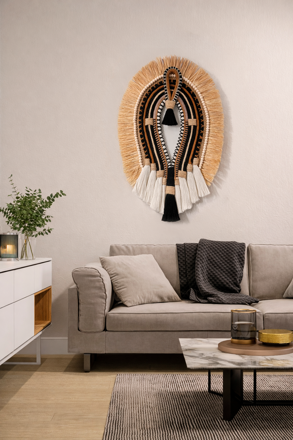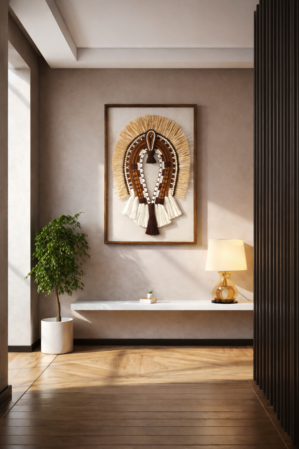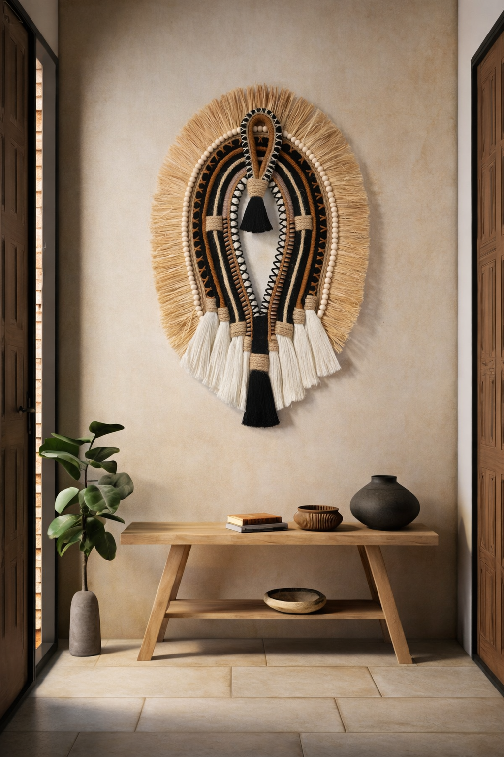 Tribal Fiber Art Decor handcrafted texture that creates an elegant and visual impact.