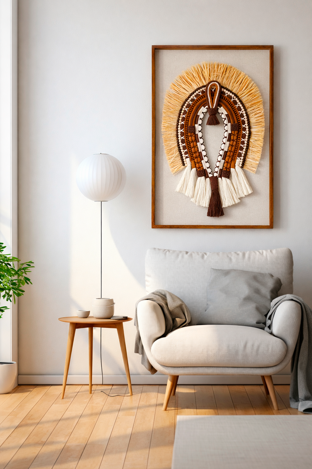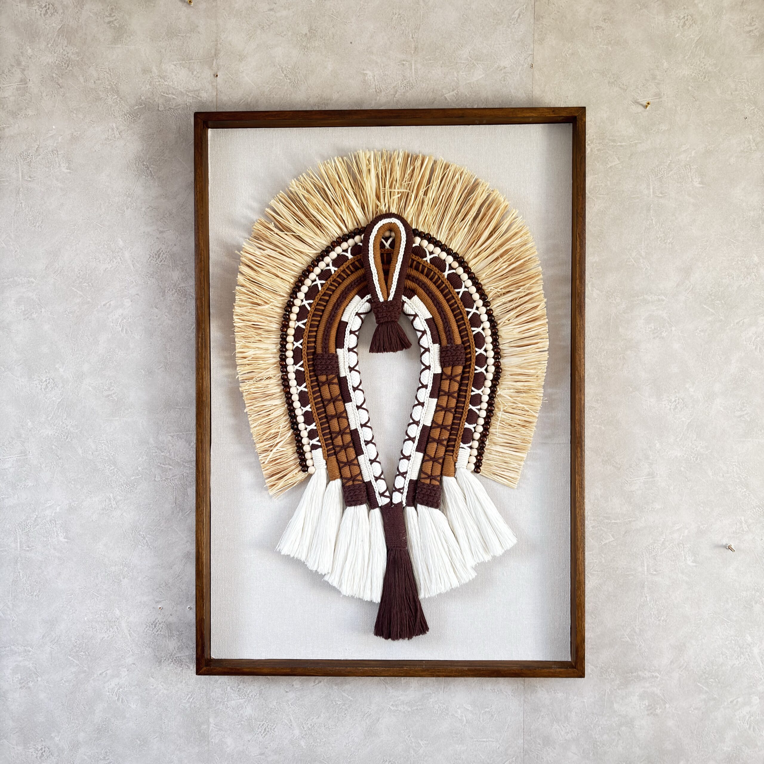 🪶 Decoração em fibra tribal com textura artesanal que cria um impacto visual elegante.